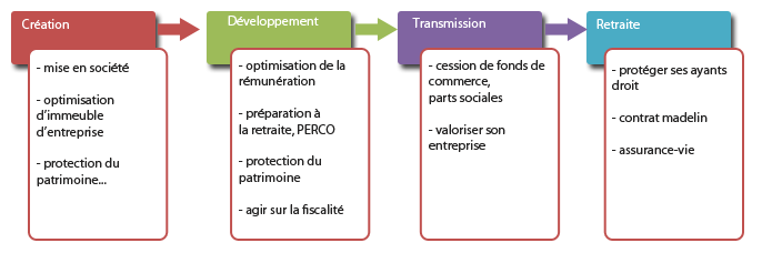 Notre cabinet accompagne les dirigeants, chefs d'entreprise et les professionnels sans distinction de taille et de secteur d'activité dans le cadre d'une stratégie patrimoniale globale.